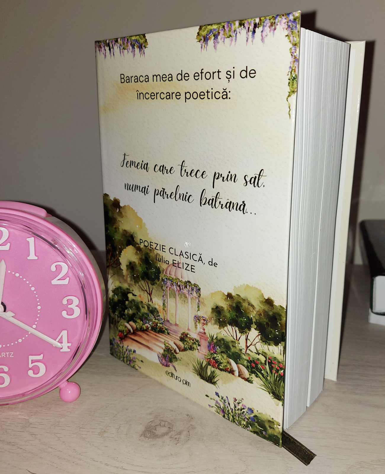 Această Carte reprezintă, de fapt, al doilea meu proiect foarte mare de Poezie clasică și am căutat să îi dau o față de care să fiu foarte mândră, fiind al doilea mare proiect de ”Atelier” scriitoricesc, numit ”Baraca”. Scriitorul se retrage ca să scrie în camera lui, care poate mai mereu este una elegantă și surprinzătoare, cu multe cărți, în ea, și cu multe obiecte de care persoana se simte atașată, este odaia lui tainică, una care poate a cunoscut și ”mașina de scris” cu tonner foarte clasic, în ea, dar este abia un ”Atelier” de creație, așa cum au deținut și predecesorii săi.