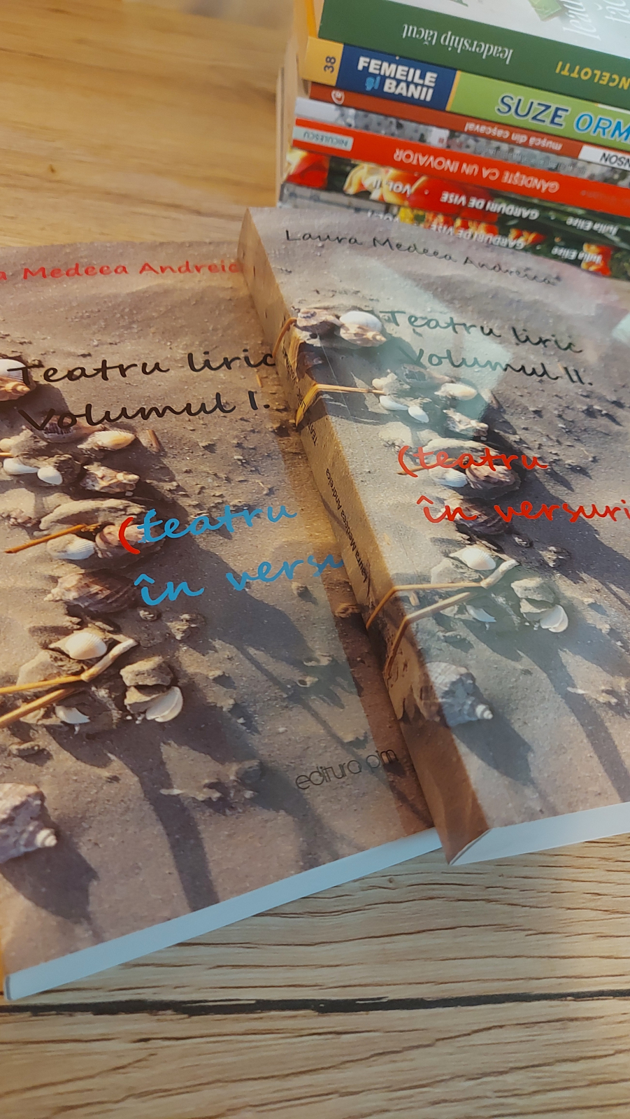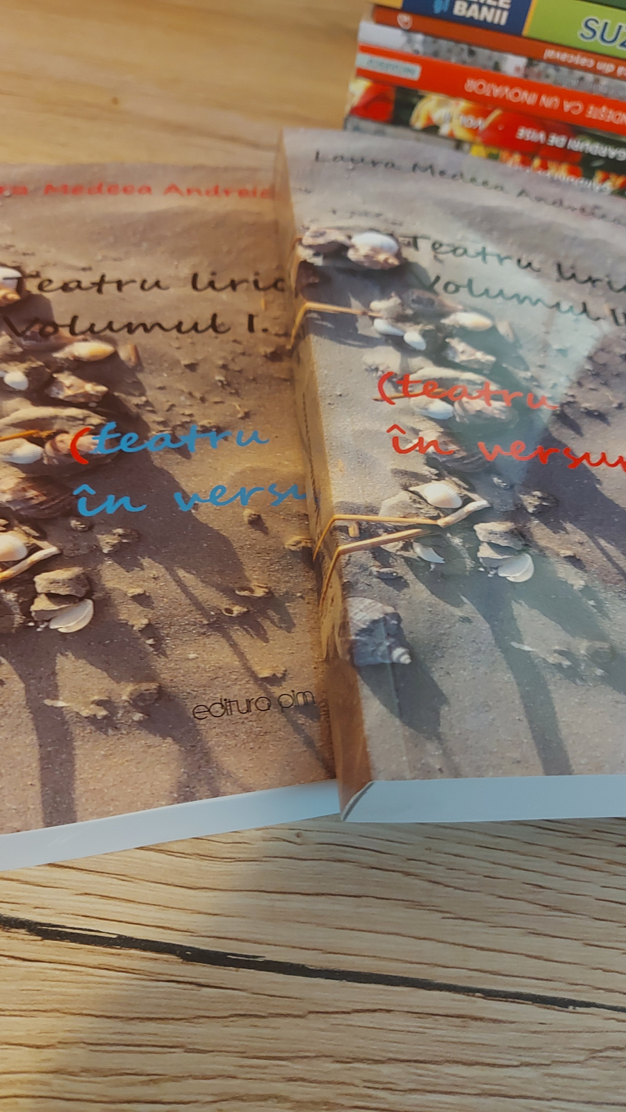 Cum spuneam, recomand foarte mult, pentru frumusețea produsului, din două Volume, ca aceste două cărți să se achiziționeze, în mod cumulat. Sunt foarte mândră, de fapt, de aceste cărți, fiecare având peste 350 de pagini (359/372) și sunt ceea ce am eu mai bun, în materie de vers lung, combinat cu teatru (în versuri). Noțiunea de teatru în versuri este puțin exploatată în limba română, cărțile mele notamente au primit denumirea nouă de Teatru liric (teatru în versuri).